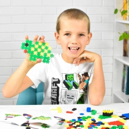 La grande quantité de pièces colorées stimule le jeu créatif – des mosaïques planes aux modèles 3D simples, développant l’imagination et la motricité fine.