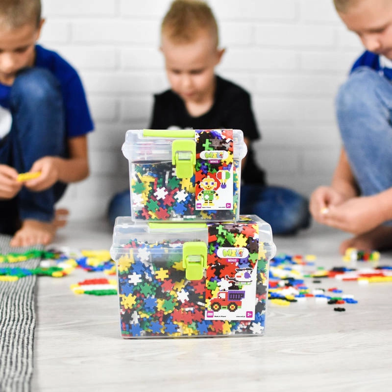 La boîte de rangement transparente avec fermeture solide et poignée garde toutes les pièces ensemble. Les enfants emportent l’ensemble partout – en vacances, chez mamie ou à l’école maternelle.
