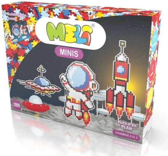 Le jeu de construction créatif Meli Minis Cosmos propose 3 modèles en 1 – une fusée, un astronaute et un OVNI – pour un total de 1000 pièces aux couleurs vives. Les enfants construisent selon un plan à l’échelle 1:1 ou librement, développant la motricité fine, la représentation spatiale et la créativité. Les éléments sont fabriqués dans un matériau résistant, sans BPA, phtalates ni PVC, et conformes aux normes CE et EN-71.