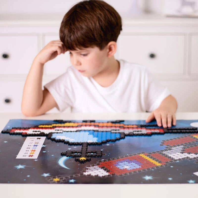 Avec 1000 pièces, construisez une fusée, un astronaute et un OVNI. Les couleurs vives et les modèles détaillés raviront les petits fans de l’espace.