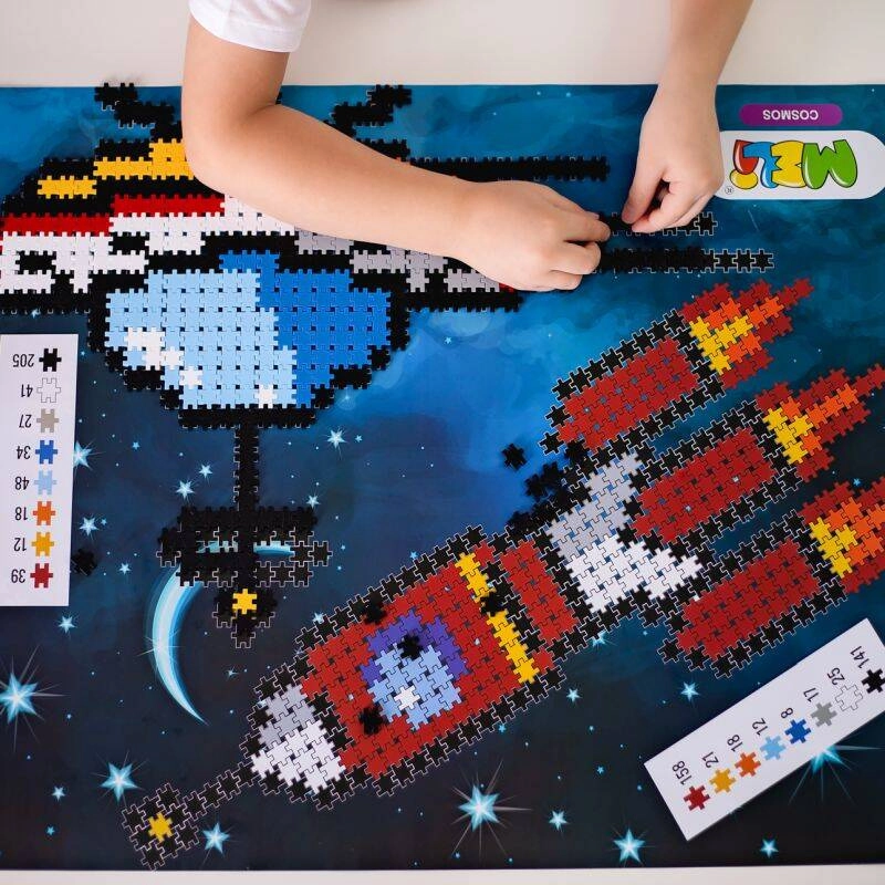 Entrez dans l’univers du cosmos avec Meli Minis Cosmos 3 en 1. Les pièces plates « pixel » s’emboîtent facilement et permettent de créer des images détaillées ainsi que des constructions 3D. Le grand plan à l’échelle 1:1 guide pas à pas et facilite les débuts, tout en laissant assez de place à l’imagination.