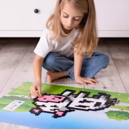 Les enfants assemblent une vache et une brebis détaillées à partir d’éléments uniformes créant une mosaïque spectaculaire. Idéal pour développer l’imagination et la patience.