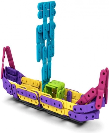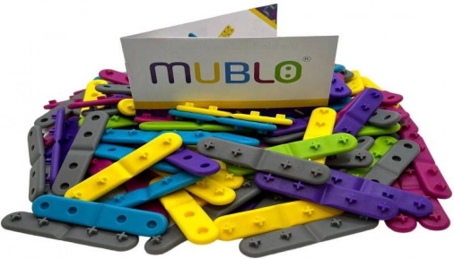 Le set de blocs Mublo comprend 200 pièces en plastique souple et sûr. Les éléments en forme de bandes, qui se plient au milieu, offriront à votre enfant d’innombrables possibilités de créer des constructions en volume.