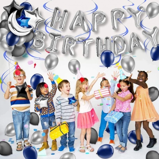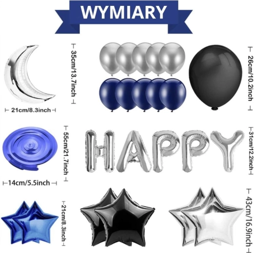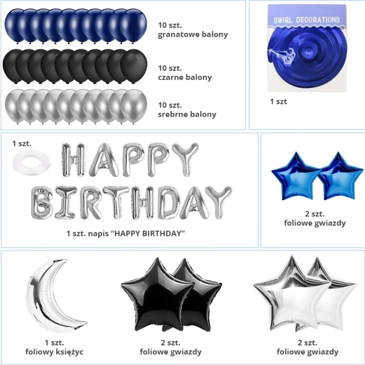 Ensemble de ballons d’anniversaire – bleu foncé et noir