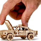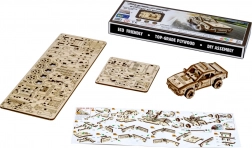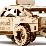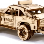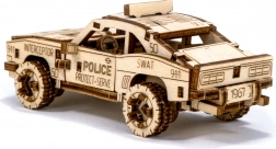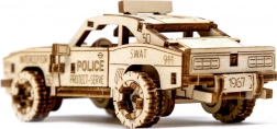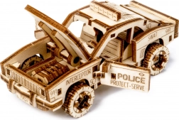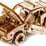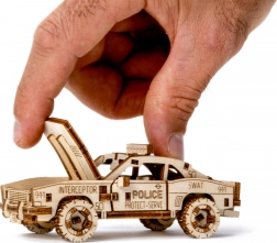 L’assemblage se fait sans colle et les pièces s’emboîtent avec précision. Le résultat est une miniature résistante de voiture de police, parfaite sur une étagère ou un bureau. La marque WOODEN CITY veille en outre à l’écologie – le produit est emballé sans plastique.