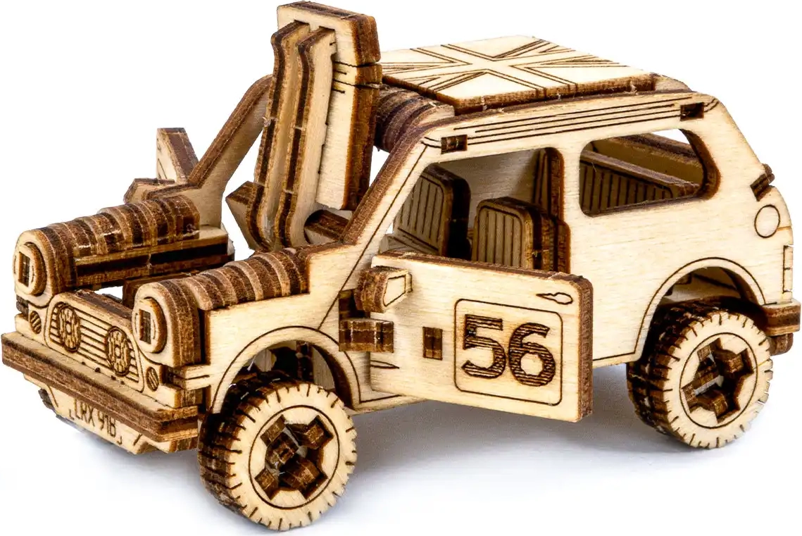 Ce modèle mécanique 3D de voiture de rallye est un excellent choix pour tous les amateurs de création. Grâce à la découpe laser précise du contreplaqué de bouleau, les pièces s’emboîtent en douceur et vous profitez d’un agréable moment de détente et du développement de votre créativité lors d’un montage sans colle. Le modèle fini séduit par ses détails réalistes, de la calandre au numéro sur les portes, et devient un élément déco élégant pour une étagère ou un bureau.