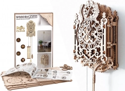 Le modèle est composé d’un matériau naturel — du contreplaqué de bouleau de haute qualité. Son principal avantage est l’assemblage sans colle ni outils. L’horloge est fonctionnelle après remontage et offre un agréable tic-tac jusqu’à 12 heures.