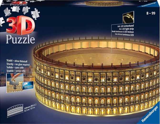 Montez un modèle fascinant du Colisée romain avec ce puzzle 3D de la marque allemande renommée RAVENSBURGER. Les pièces flexibles spéciales avec la technologie EasyClick s'emboîtent parfaitement en place pour créer une structure stable et impressionnante sans besoin de colle.