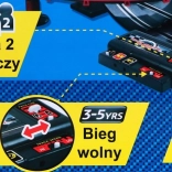 La piste dispose de deux modes de vitesse – rapide et lent – ainsi qu'un compteur de tours. Cet ensemble interactif inclut deux manettes que les enfants utilisent facilement pour contrôler les voitures sur la piste.