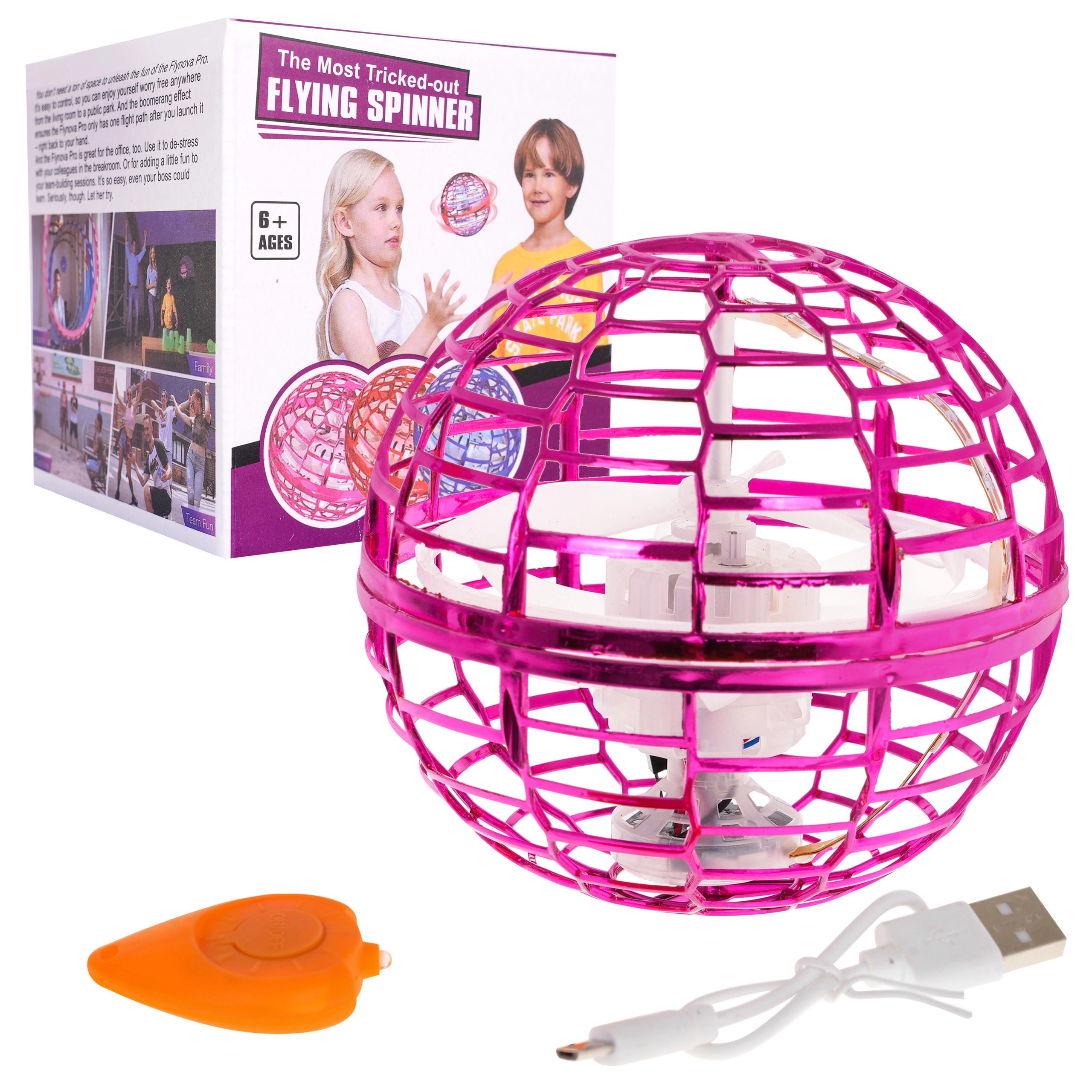 Balle volante contrôlée par gestes avec LED et télécommande. Conception sûre, batterie rechargeable 3,7 V, divertissement pour enfants dès 6 ans et adultes.