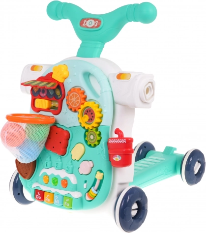 La trottinette et table interactive pour enfants 5-en-1 est idéale pour le développement de l’enfant. Conçue pour être flexible et modulable – vous pouvez la transformer en :