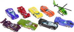 Le coffret comprend 8 petites voitures qui changent de couleur, un hélicoptère et divers panneaux de signalisation, offrant d'infinies possibilités de jeu créatif.