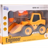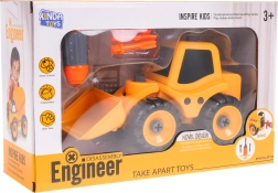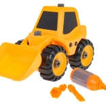 L’emballage comprend un tournevis avec 3 embouts interchangeables (plat, cruciforme et clé) qui aident les enfants à entraîner leur motricité fine, leur patience et leur logique. Ses dimensions compactes font du bulldozer un excellent compagnon aussi bien dans la chambre que dans le bac à sable.