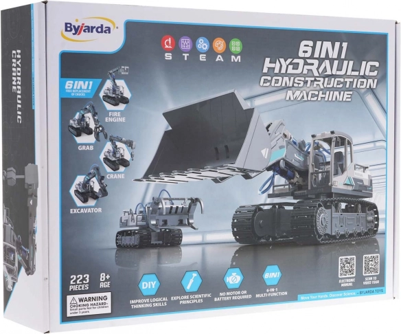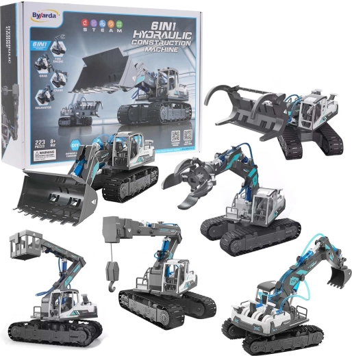 Ce kit éducatif initie les enfants de manière ludique aux principes de l’hydraulique et de la mécanique. À partir de 223 composants, construisez 6 modèles fonctionnels : pelleteuse, chargeur, camion de pompiers avec plate-forme, grue, pince et bulldozer. Tous les modèles partagent une superstructure rotative à 360° et un châssis à chenilles avec bandes en caoutchouc pour un mouvement fluide.