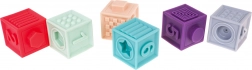 Le set comprend 6 cubes souples avec chiffres et reliefs. Ils favorisent les premiers calculs, le tri et l’empilement de tours.