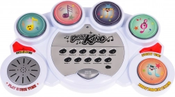 Les enfants peuvent travailler leur coordination et leur tempo sur cinq surfaces de jeu avec un choix de six rythmes de batterie jazz.