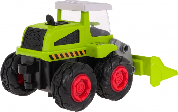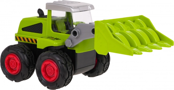 Grâce aux pneus en caoutchouc au profil accentué, le véhicule reste stable sur diverses surfaces. La transmission aux roues arrière favorise un mouvement fluide et un jeu encore plus réaliste. Idéal comme cadeau pour les petits constructeurs et les fans de machines agricoles et de chantier.