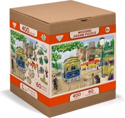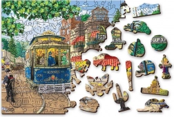 - Un puzzle unique en bois découpé au laser par WOODEN CITY, comprenant des pièces spécialement façonnées en formes d’animaux, de bâtiments ou d’objets.