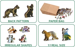 Assembler un puzzle avec des pièces de formes variées est plus difficile et représente un défi plus important que d’assembler un puzzle classique. Ce puzzle est en outre recto-verso : vous pouvez l’assembler soit en suivant l’image (face), soit en vous guidant par les formes (dos avec motif). La marque WOODEN CITY, en plus de son concept unique de puzzles, n’oublie pas l’écologie : vous ne trouverez donc aucun emballage plastique sur ces produits. Les pièces ont des formes uniques représentant des bâtiments, des objets ou des animaux en lien avec le thème. Difficulté accrue avec un nombre de pièces plus réduit : l’assemblage de pièces aux formes variées est plus exigeant.