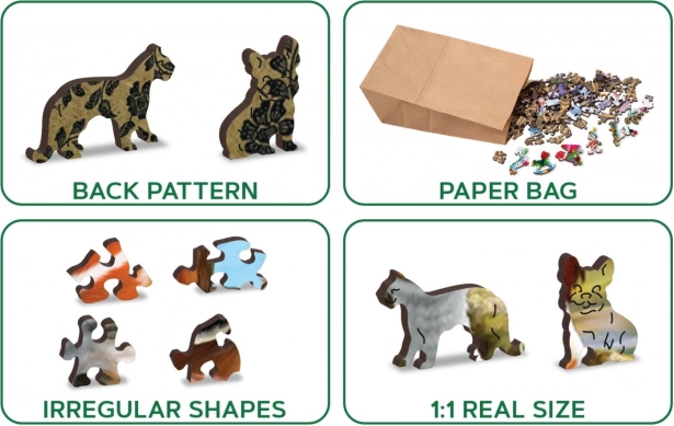 Des pièces spécialement façonnées en forme d’animaux et d’objets dynamisent l’assemblage. Le verso avec motif décoratif ajoute un nouveau défi.