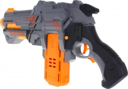 Le pistolet semi-automatique BLAZE STORM, dans une élégante couleur grise, apporte une action ludique pour les enfants dès 8 ans. Il offre une manipulation facile, un chargeur inférieur et des tirs avec des projectiles en mousse à embout en caoutchouc pour un jeu plus sûr. L’arme est alimentée par 4× piles AA (non incluses) et est idéale pour des batailles à la maison comme en extérieur. Utilisation facile, prise en main confortable, projectiles en mousse sûrs et chargeur fiable pour un maximum de plaisir.