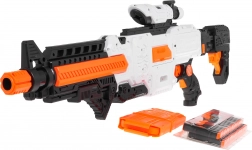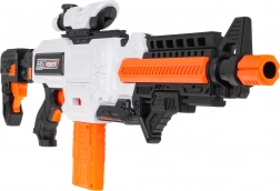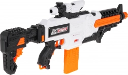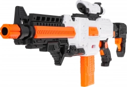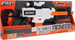 Le blaster Fast Pioneer, en blanc-orange-noir, est idéal pour les batailles à la maison comme en extérieur. Le mécanisme semi-automatique à ressort garantit une cadence rapide et fluide, tir par tir. Il suffit de charger le chargeur, de maintenir le bouton d’alimentation, de viser et d’appuyer sur la détente.
