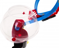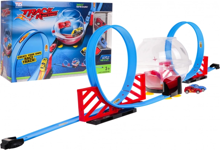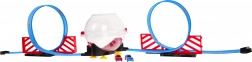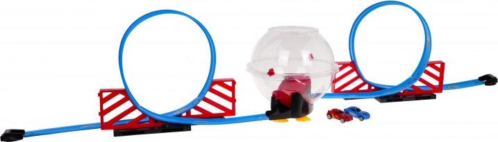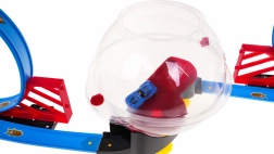 Construisez votre propre arène de course avec une piste à deux voies, deux loopings et une sphère centrale transparente. Grâce aux deux trajets indépendants, les enfants peuvent organiser de véritables duels de vitesse. En tirant la voiture en arrière, on active la propulsion pull back et la voiture s’élance vers le looping, s’insère dans la sphère et effectue à l’intérieur des rotations spectaculaires.