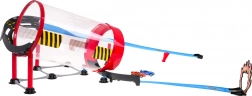 Le tube transparent permet de suivre la course tout au long de la boucle. Les petites voitures filent à grande vitesse et réalisent un looping impressionnant sans piles.