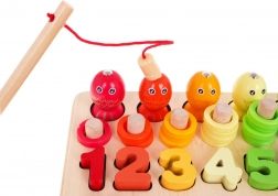Des petits poissons colorés avec aimant et une canne en bois transforment l’apprentissage en jeu amusant. Les enfants travaillent leur concentration et la fermeté de leur prise.