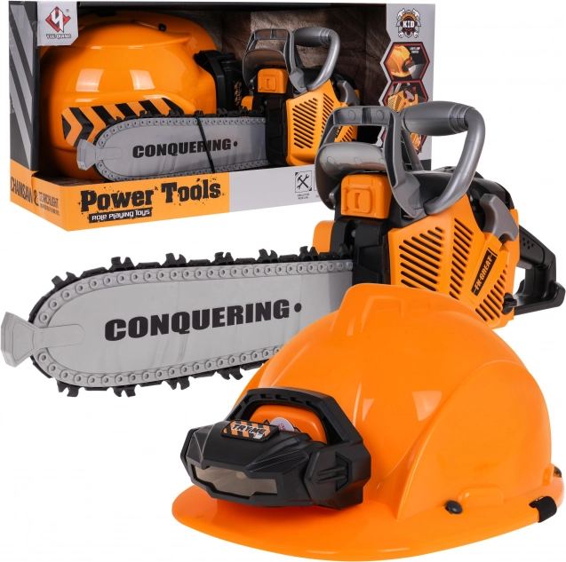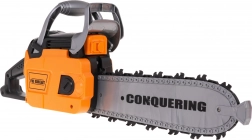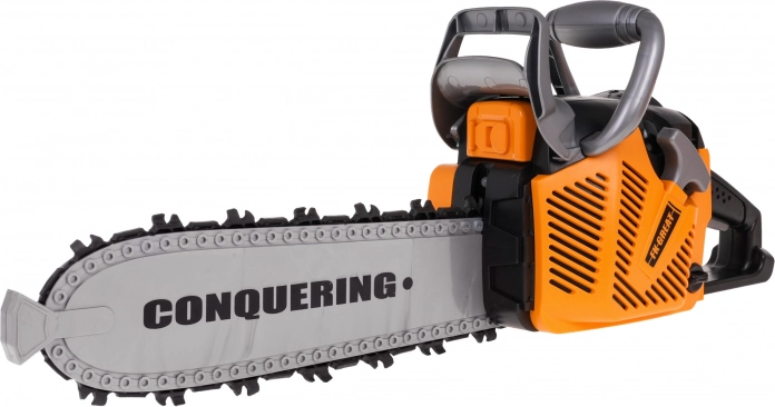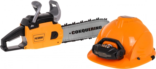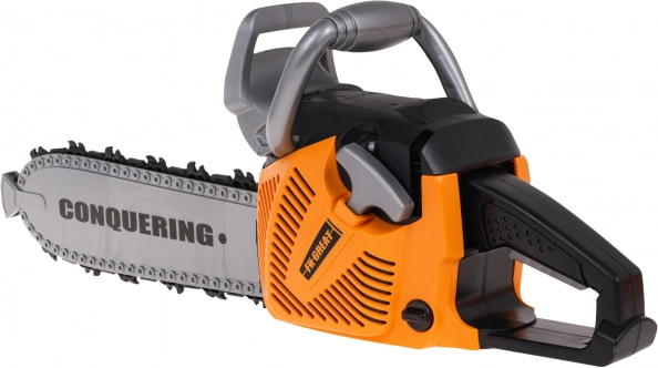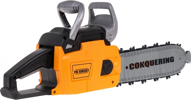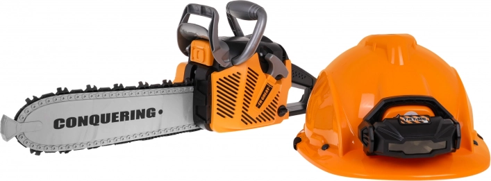 Le kit interactif de tronçonneuse mécanique avec effets sonores et casque avec lampe est destiné aux enfants à partir de 3 ans. La tronçonneuse est totalement sûre pour les enfants. Elle est fabriquée en plastique de la plus haute qualité et ne comporte aucun bord tranchant. La chaîne est en caoutchouc. Démarrez la tronçonneuse en tirant sur le cordon de démarrage, vous entendrez alors le son du moteur qui s’allume. Pour lancer la chaîne, appuyez et maintenez le bouton inférieur sur la poignée. La chaîne commencera à tourner et émettra un son de coupe. Le kit comprend un casque avec lumière réglable et sangle élastique sous le menton. La tronçonneuse fonctionne avec 3 piles AAA 1,5 V (non incluses). Le casque fonctionne avec 3 piles de type AG13 (incluses). Fonctions du kit : - effets sonores (démarrage du moteur, sons de coupe), - effets lumineux : lampe sur le casque, LED à l’avant de la tronçonneuse, - chaîne en caoutchouc rotative. |