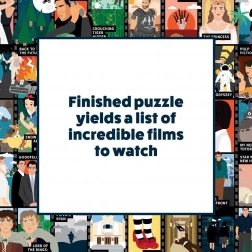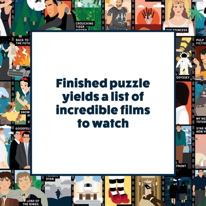 Le puzzle révèle progressivement une sélection de cinquante titres cultes de genres variés – une inspiration parfaite pour vos marathons cinéma.