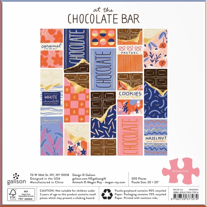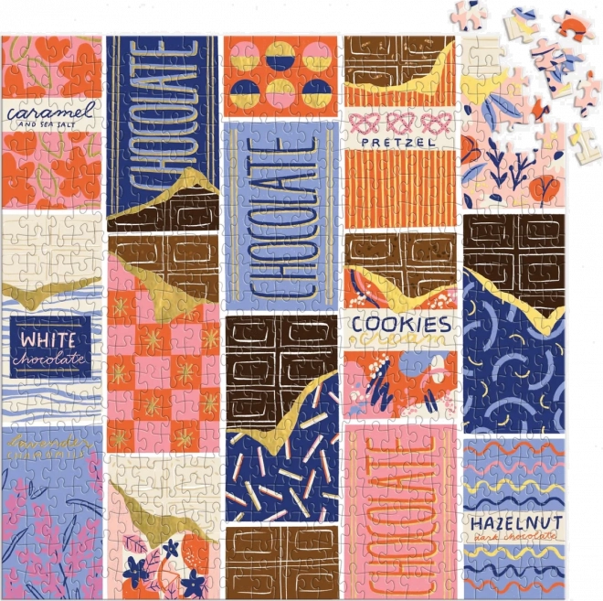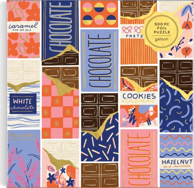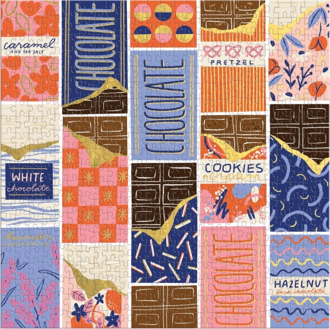Un puzzle stylé au motif d’emballages de chocolats colorés conçu par la designer Megan Roy. Grâce à ses 500 pièces découpées avec précision, il est parfait pour une soirée détente ou une session du week‑end. Le format carré de env. 51 × 51 cm se prête aussi bien à la table qu’à l’encadrement au mur.