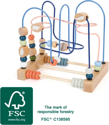 Ce labyrinthe motorique est fabriqué en bois certifié FSC® et offre un divertissement durable aux enfants. Grâce aux perles en bois et aux éléments coulissants représentant un ours polaire, un phoque et une chouette harfang, les enfants s’amusent tout en développant leur motricité fine et leur coordination œil-main. Les compteurs à anneaux offrent d’autres possibilités de jeu et apprennent aux enfants à compter de manière ludique.