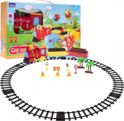 Découvrez une locomotive interactive ludique pour les enfants dès 3 ans avec des effets lumineux, des sons réalistes et des éléments mobiles. Le set comprend une voie circulaire, 2 wagons (avec charbon et avec arbre) et des accessoires de signalisation. La locomotive avance, la cabine s’ouvre pendant la marche et laisse apparaître à l’intérieur une figure robotique – un excellent jouet pour développer l’imagination et la motricité.