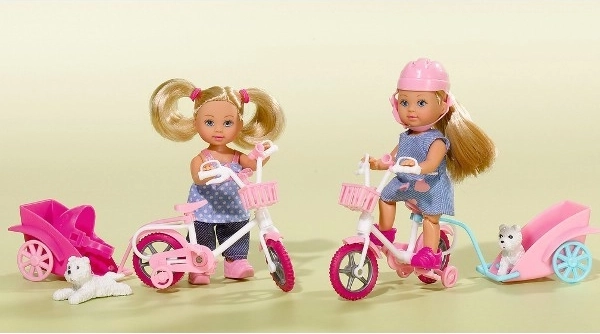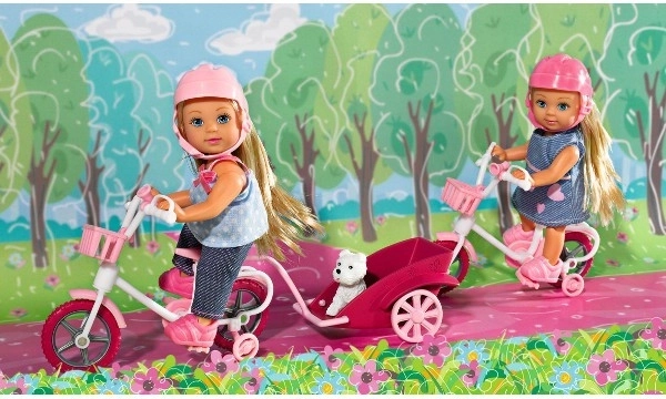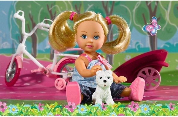 - Poupée Evi, tricycle avec remorque amovible, petit chien, casque
