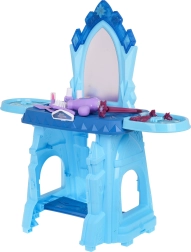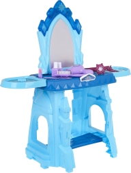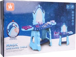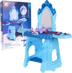 Cette coiffeuse magique avec un motif de château de glace offre aux enfants des possibilités infinies de jeu créatif. Elle est équipée d'un grand miroir, au-dessus duquel se trouve un bouton étoilé qui, lorsque pressé, active des effets de lumière et de son.