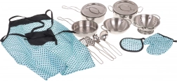 Ce set de cuisine pour enfants, superbement conçu, est idéal pour les petits cuisiniers. Le métal durable assure une longue durée de vie et un aspect réaliste que les enfants adorent. En plus des ustensiles, le set comprend des accessoires pratiques pour toute cuisine d'enfants.