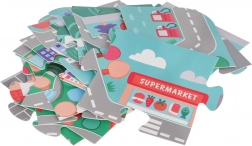 Le tapis unique avec motifs de ville améliore les compétences motrices et stimule l'imagination urbaine.