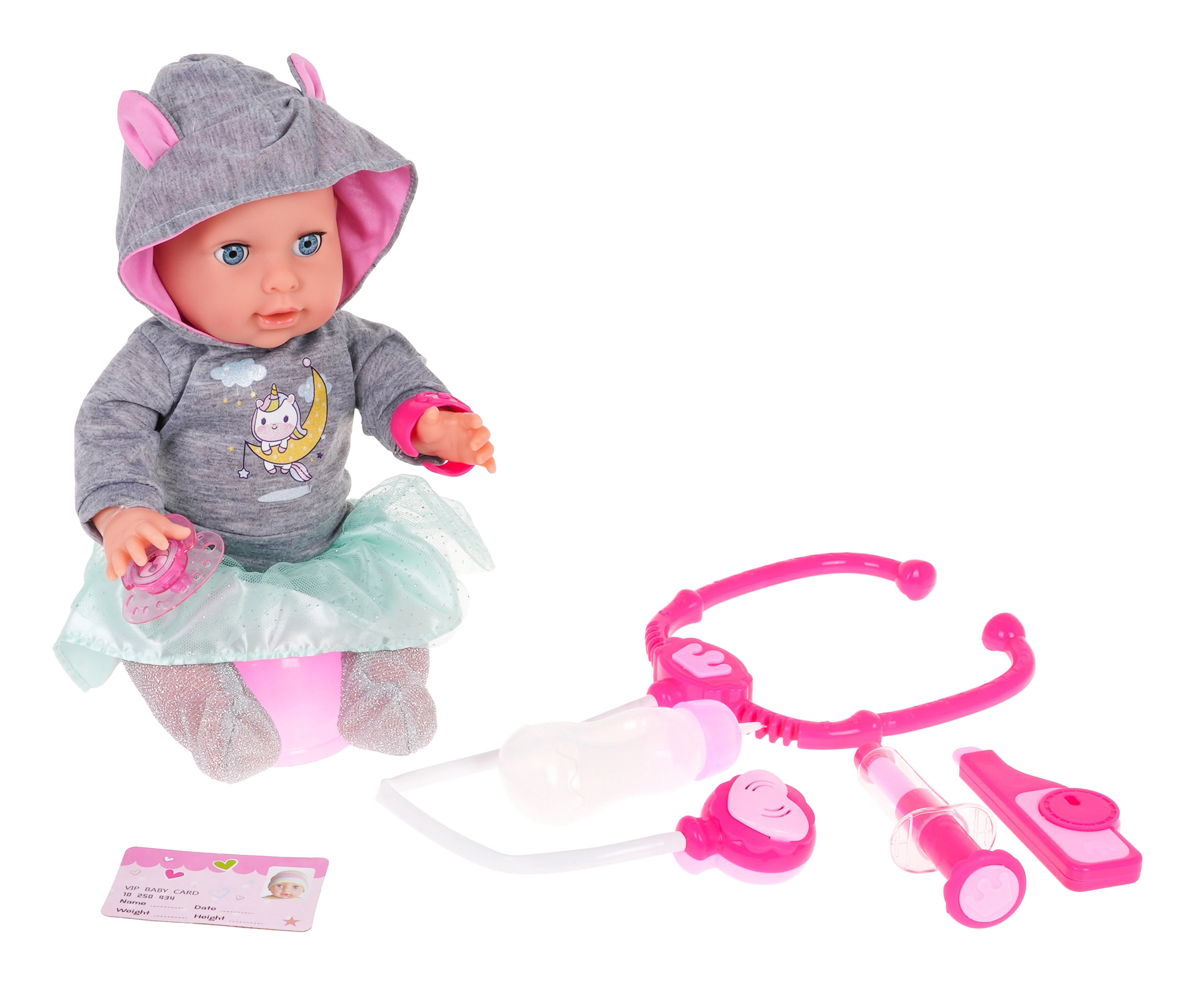 Ce jouet encourage le développement du sens des responsabilités et des soins. L’ensemble comprend une tétine magnétique et des accessoires médicaux pour permettre à votre enfant de jouer au médecin. Piles non incluses (3 x AA 1,5 V pour la poupée et 2 x AG13 pour le stéthoscope).