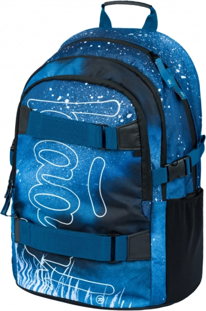 • Deux sangles pour fixer un skateboard sont placées sur le compartiment avant du sac à dos.