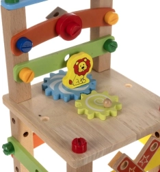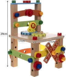 La chaise est livrée en pièces qui peuvent être facilement assemblées à l'aide des outils fournis. Les enfants peuvent ainsi créer leur propre projet.