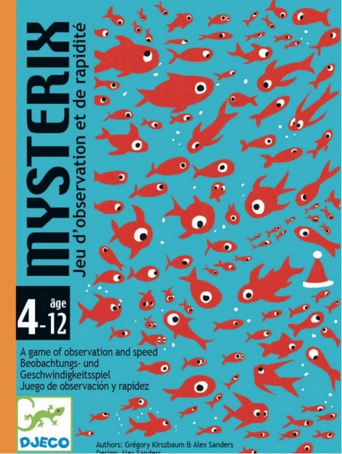 À chaque manche, les joueurs examinent simultanément les cartes et tentent d’être les premiers à repérer l’intrus – l’image qui ne correspond pas aux autres. Des règles simples, des parties courtes et de belles illustrations font de DJECO Mysterix un choix idéal pour les plus jeunes enfants comme pour des parties familiales rapides.