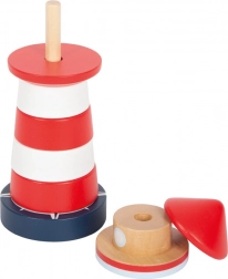 Cette tour d’empilage en bois, inspirée d’un phare classique rouge et blanc, apporte aux enfants dès 1 an le plaisir de découvrir et d’empiler. Les sept anneaux colorés se posent sur une base stable avec un pion flexible, qui augmente la sécurité du jeu. Apprendre à ordonner par taille favorise la pensée logique et la patience.