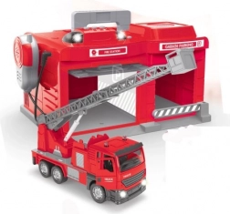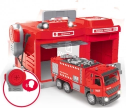 Ce set de jeu de pompiers – garage apporte aux enfants beaucoup de divertissement authentique. En appuyant sur le bouton situé sur la partie supérieure du véhicule, vous activez des lumières clignotantes et des effets sonores réalistes qui ajoutent du suspense au jeu. Le bouton latéral déclenche des annonces parlées pour des aventures encore plus immersives.
