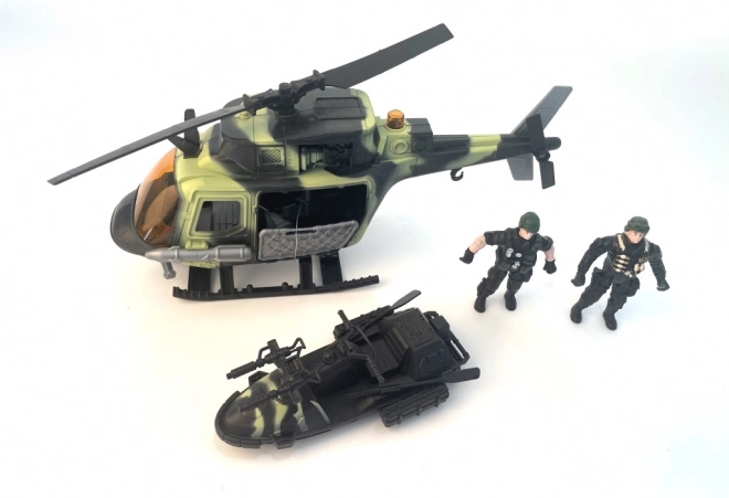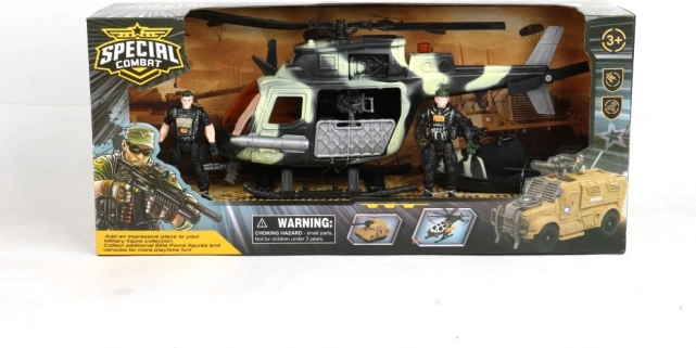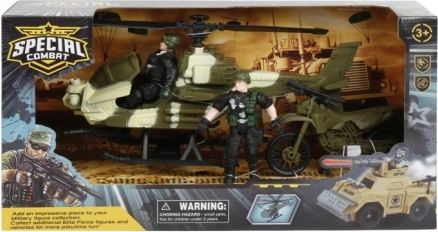 Cet ensemble de combat spécial offre aux enfants des possibilités infinies de jeu imaginatif. Vous pouvez choisir entre l'hélicoptère ou la voiture tout-terrain, chaque ensemble inclut une figurine d'action et d'autres accessoires de jeu pour des scénarios militaires réalistes.