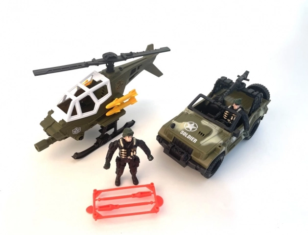 - Véhicule, hélicoptère, 2 soldats, accessoires