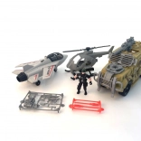 Grande ensemble militaire avec véhicule de combat, hélicoptère et chasseur est idéal pour tous les petits fans de technologie militaire et de scènes d'action!