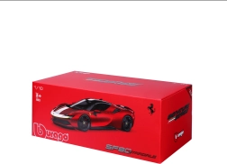 Le modèle Ferrari SF90 Stradale Assetto Fiorano 2020 de la marque Bburago capture fidèlement le caractère de la première hybride rechargeable de FERRARI. L’édition spéciale Assetto Fiorano est axée sur des performances et un comportement routier maximaux – des éléments qui se reflètent aussi dans la précision de ce modèle réduit. La peinture rouge avec des détails contrastés met en valeur le design sportif et les lignes aérodynamiques.