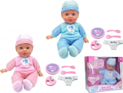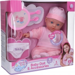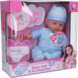 Adorable bébé avec sons de 41 cm qui ravira chaque petit soignant. Il possède un corps souple et, lorsqu’on appuie sur son ventre, il émet des sons réalistes (maman, papa, rires, babillage). Le coffret comprend des accessoires pratiques pour jouer. Disponible en 2 variantes de couleur – rose et bleu.