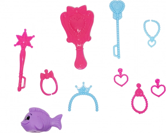 - Accessoires variés – bijoux pour la poupée, figurine de dauphin et peigne pour un coiffage facile.